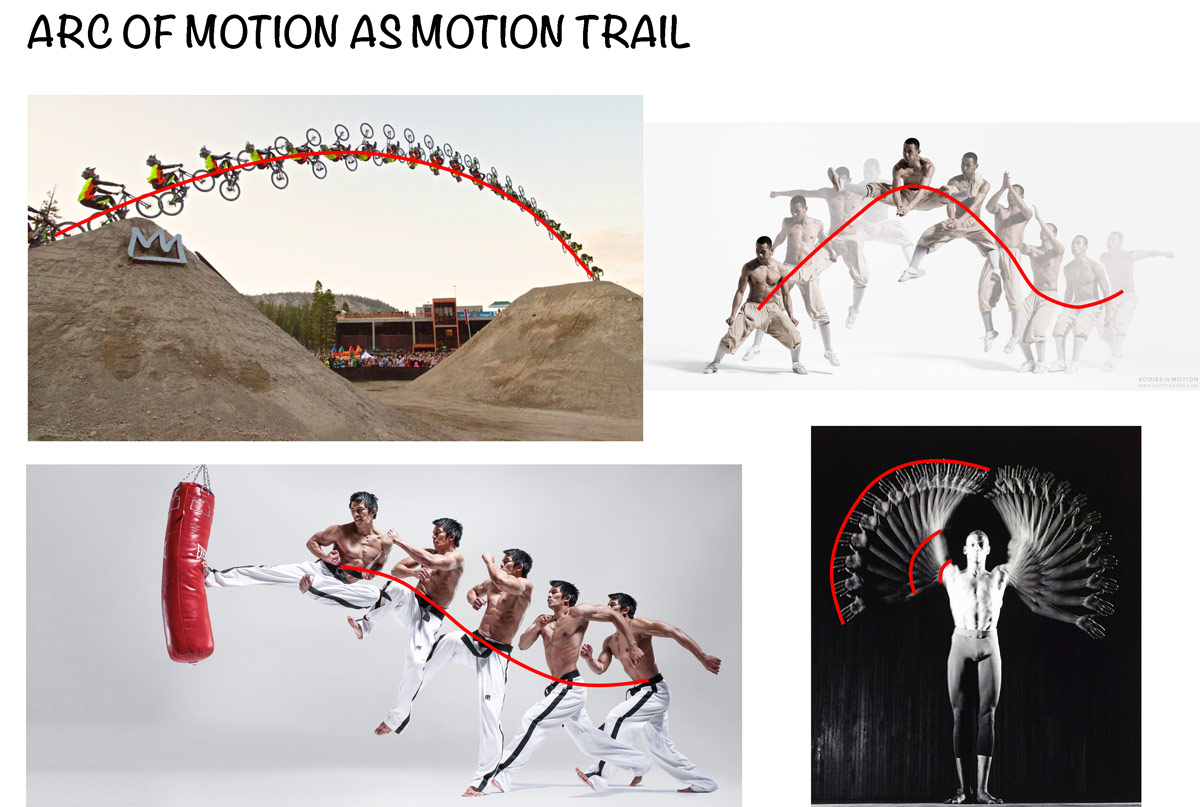 In general terms, The Arc of Motion means the visual path (trajectory) of an action from one point to another (keyframes).