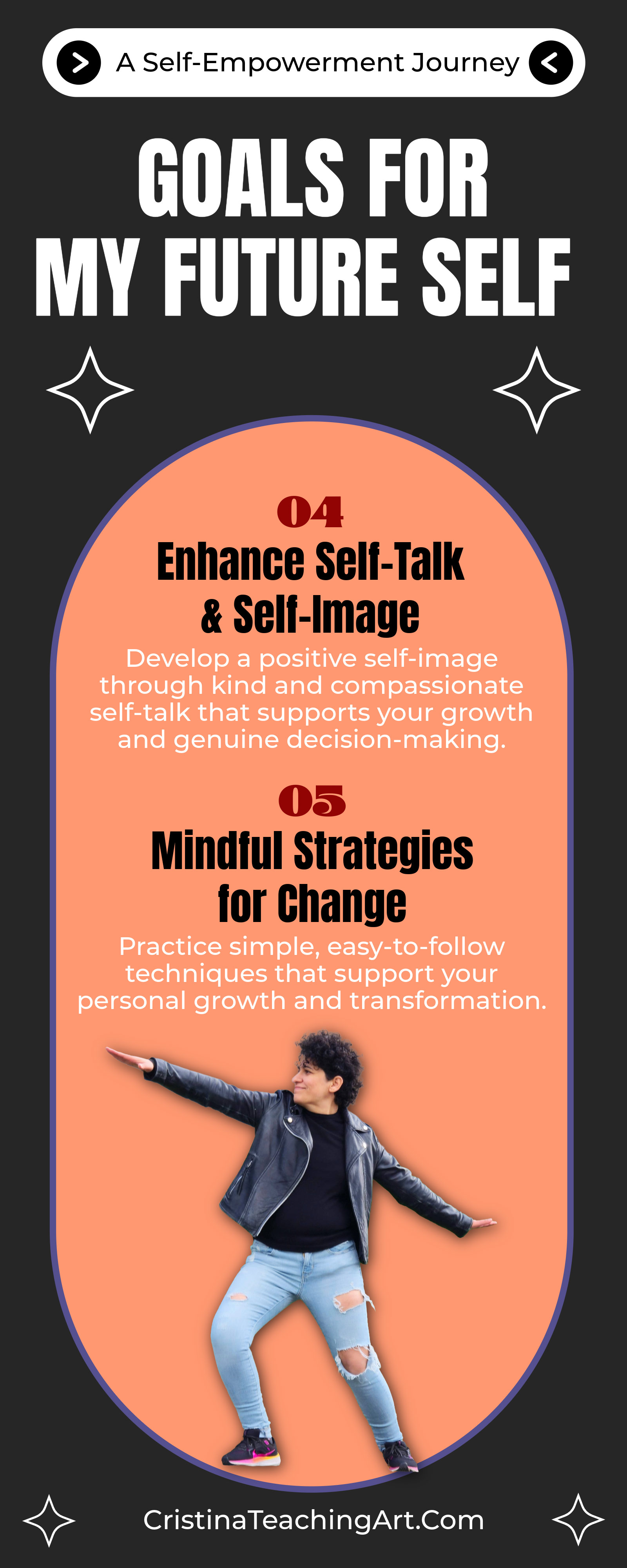 Develop a compassionate inner dialogue that supports your growth. Strengthen your self-confidence and build a positive self-image that encourages authenticity and empowered decision-making. - Mindful Strategies for Change