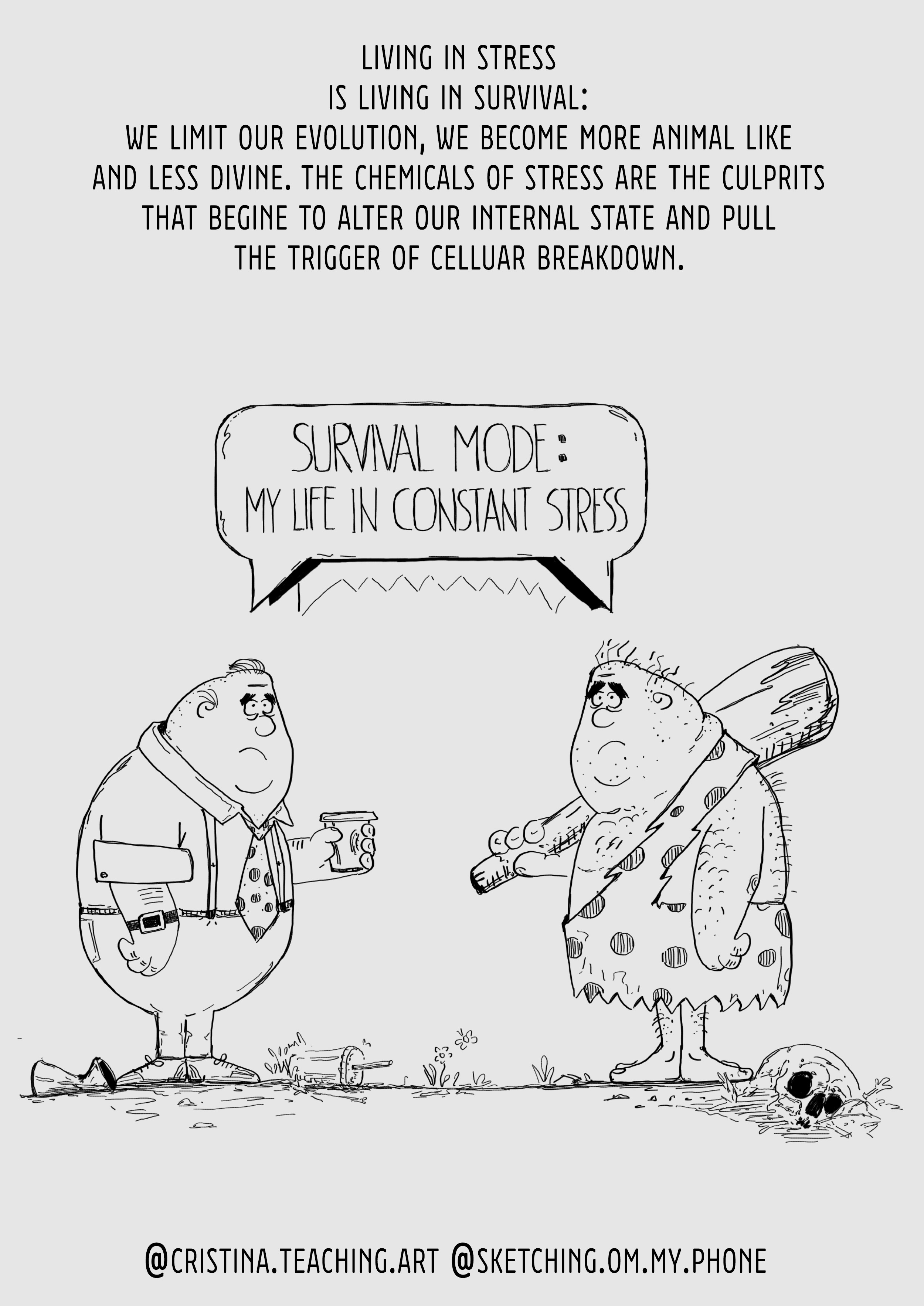 ”Living in stress is living in a primitive state of survival common to most species. We limit our evolution, the chemicals of stress drive our big-thinking brain to act equal to its chemical substrates. In effect, we become more animal-like and less divine. The chemicals of stress are the culprits that begin to alter our internal state and pull the trigger of cellular breakdown.” – Dr. Joe Dispenza